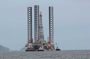 | Entering Nanaimo Harbor, we saw this oil rig being towed by 4 tugs into the harbor… |