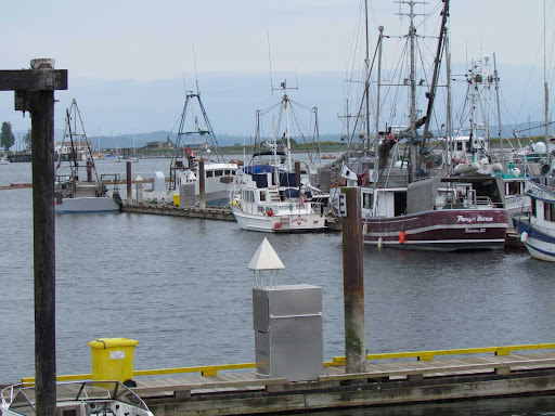 So, rather than the planned 30-mile day, we had a 50-mile day. Everyone was pretty tired by the time we got to Comox. We’re side-tied on F dock, with a bunch of fish boats. We walked around the town for a bit, and now are back at the boat where Jim can start working on the starter and we can get this update posted to our blog. We found the wi-fi access here isn’t to the computer on our boat, rather we have to take the computer to the office….or have line of sight to their antenna (we’d have to take the computer out on the dock in order to do that). At least we can get wi-fi!