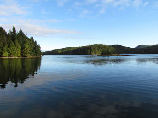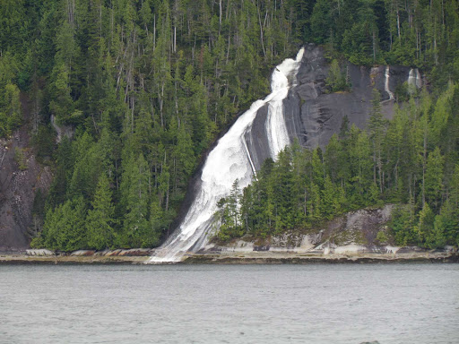 We left Kwatsi Bay around 1100, and all the other boats at the dock left within minutes of each other. However, we encountered a boat on its way in as we left, so the dock won’t be empty very long. We topped up our water tank, and chatted with Anca in the store as she checked us out. Russell and Max helped us get away from the dock, and we made our way north in Tribune Channel. It was rather rough motoring into a 15-knot northwest wind, but the chop was reduced as we left Tribune Channel and entered Penphrase Passage. From there on, it was an easy passage. Mickey and Rosie are getting more comfortable with the motion and noise, and they moved around more in the cabin today while we were underway.