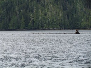 | We encounter lots of floating logs from logging activity in the area. This is an entire floating tree! |