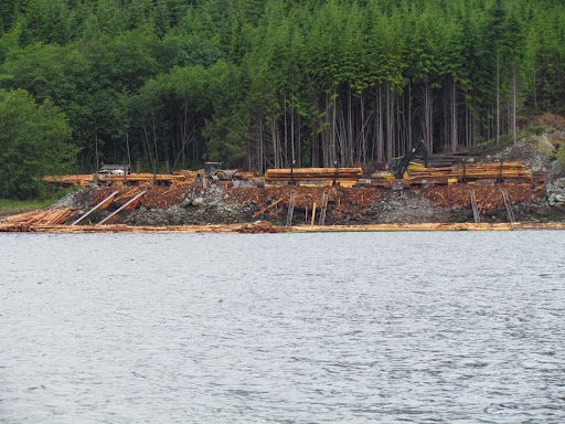 We noticed fog on the surface of Johnstone Strait as we looked out from Havannah Channel, and the foggy and drizzly conditions worsened as we entered the strait. We navigated by radar for most of the passage, with visibility of 2 miles or less. We had to watch carefully as there were lots of floating logs in the strait.