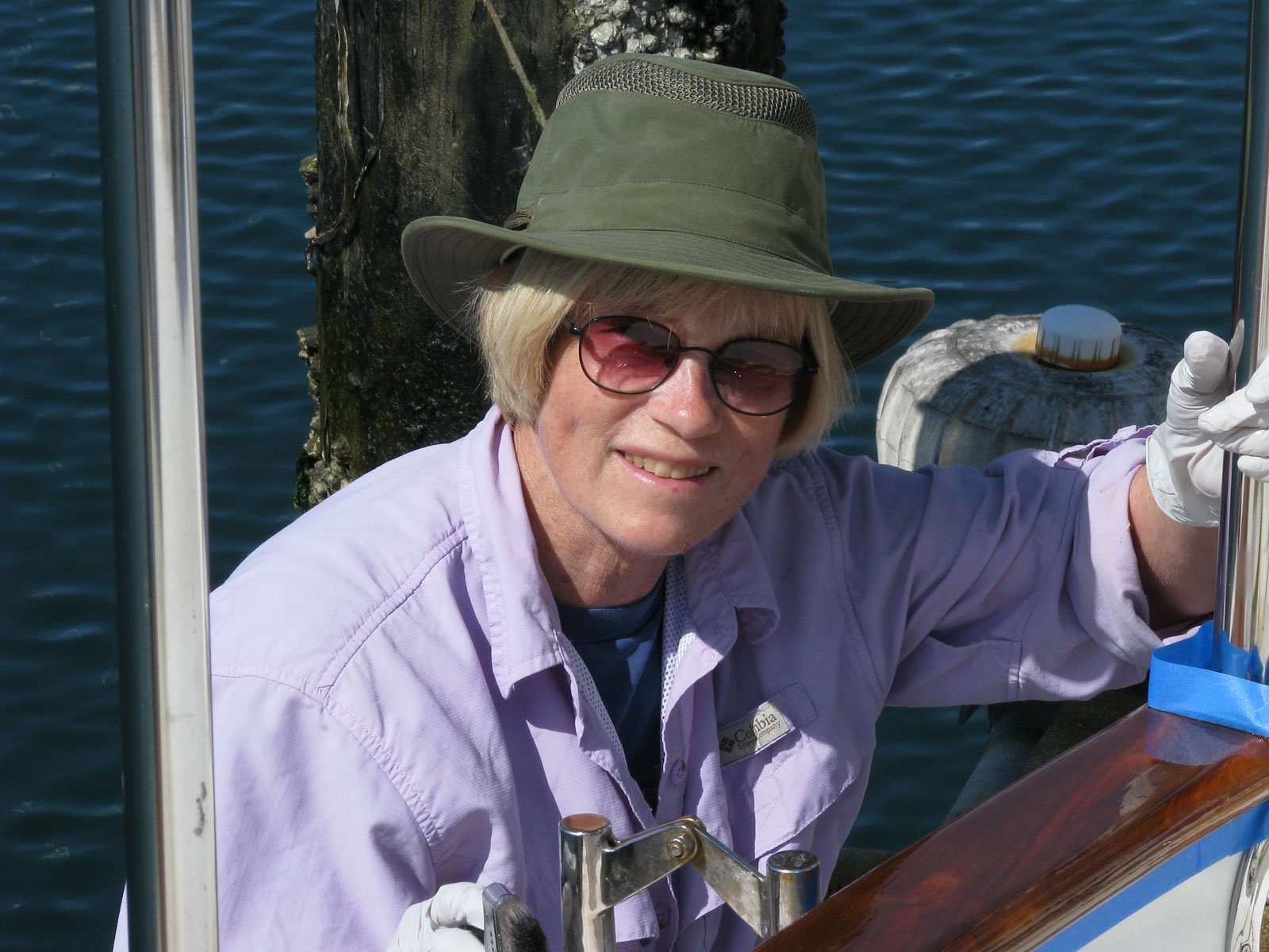 Just after this photo was taken, my hat almost blew off and I had to attach the chin strap of my Tilley hat so that it wouldn’t blow away! It wasn’t the best weather day for varnishing.