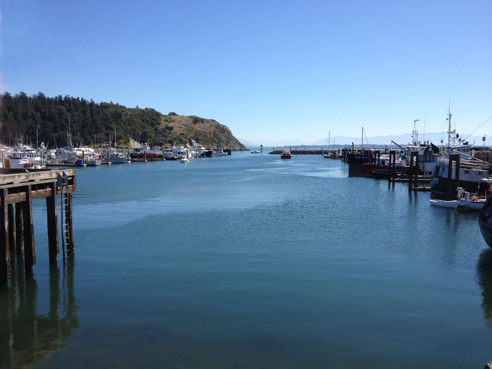 On our walk back to Anacortes Marina, we stopped to take this photo of Fidalgo Bay, with Cap Sante Park on the left and snow-capped Mt. Baker on the right in the distance.