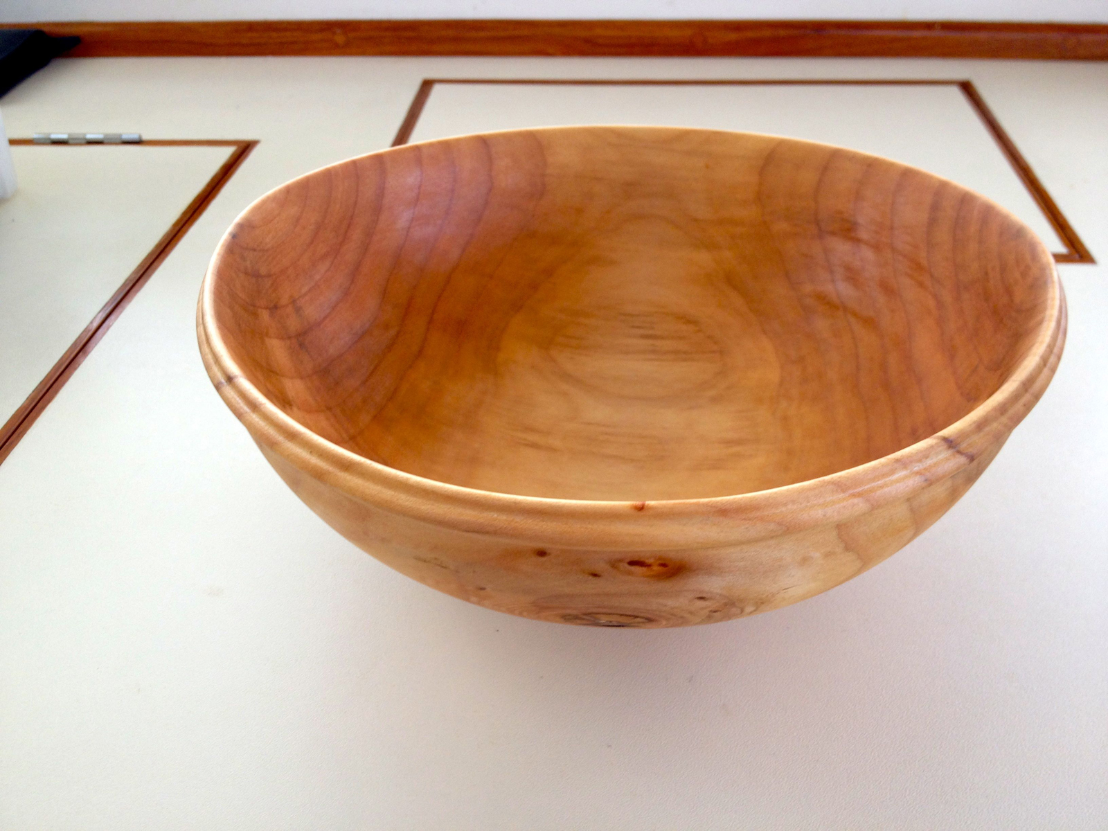 The maple bowl we found to use as a small salad bowl. It is lightweight and will fit nicely in one of our boat lockers.