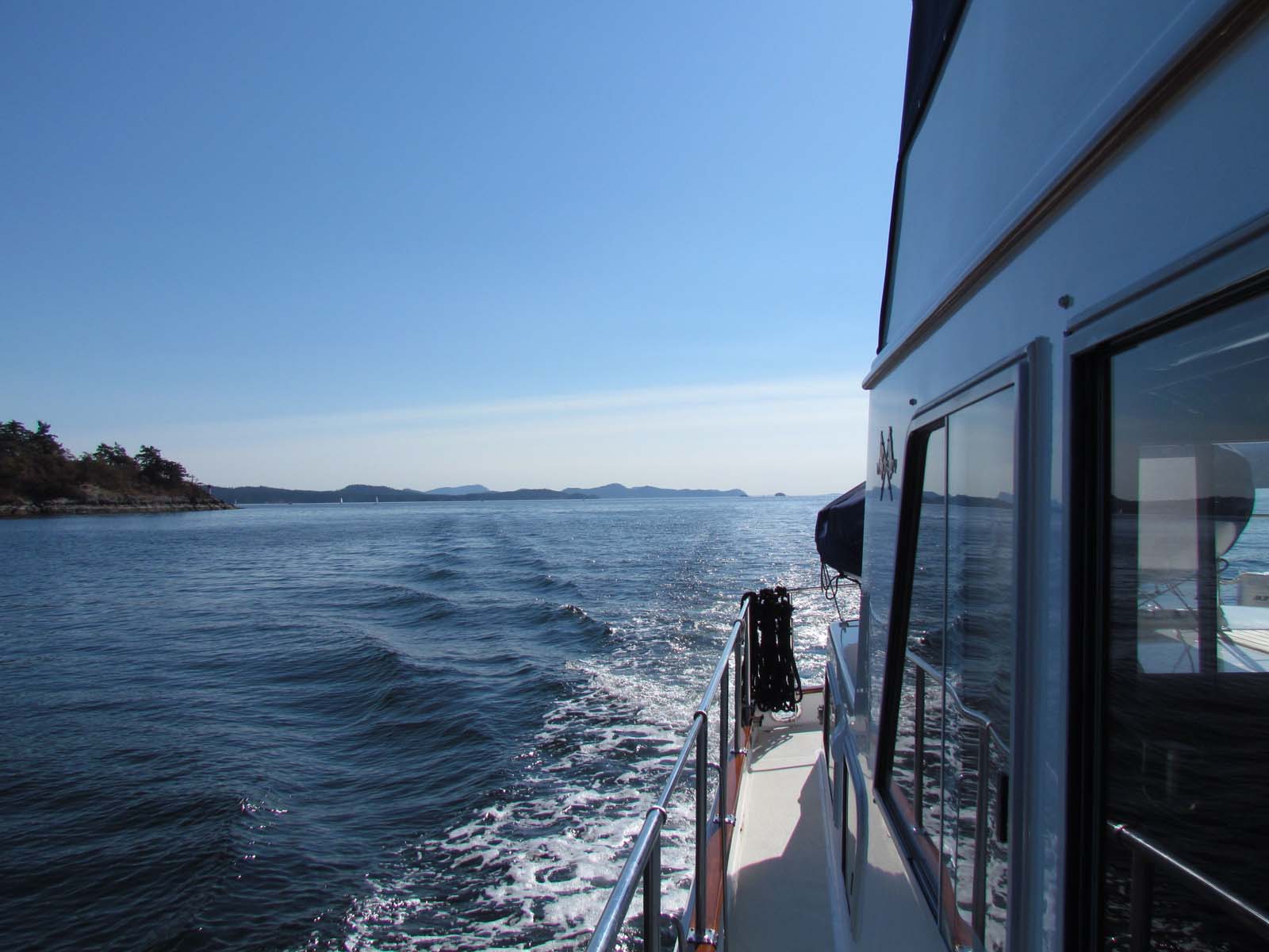 Looking back at the entrance to Montague, as we made our way across Trincomali Channel toward Ganges.