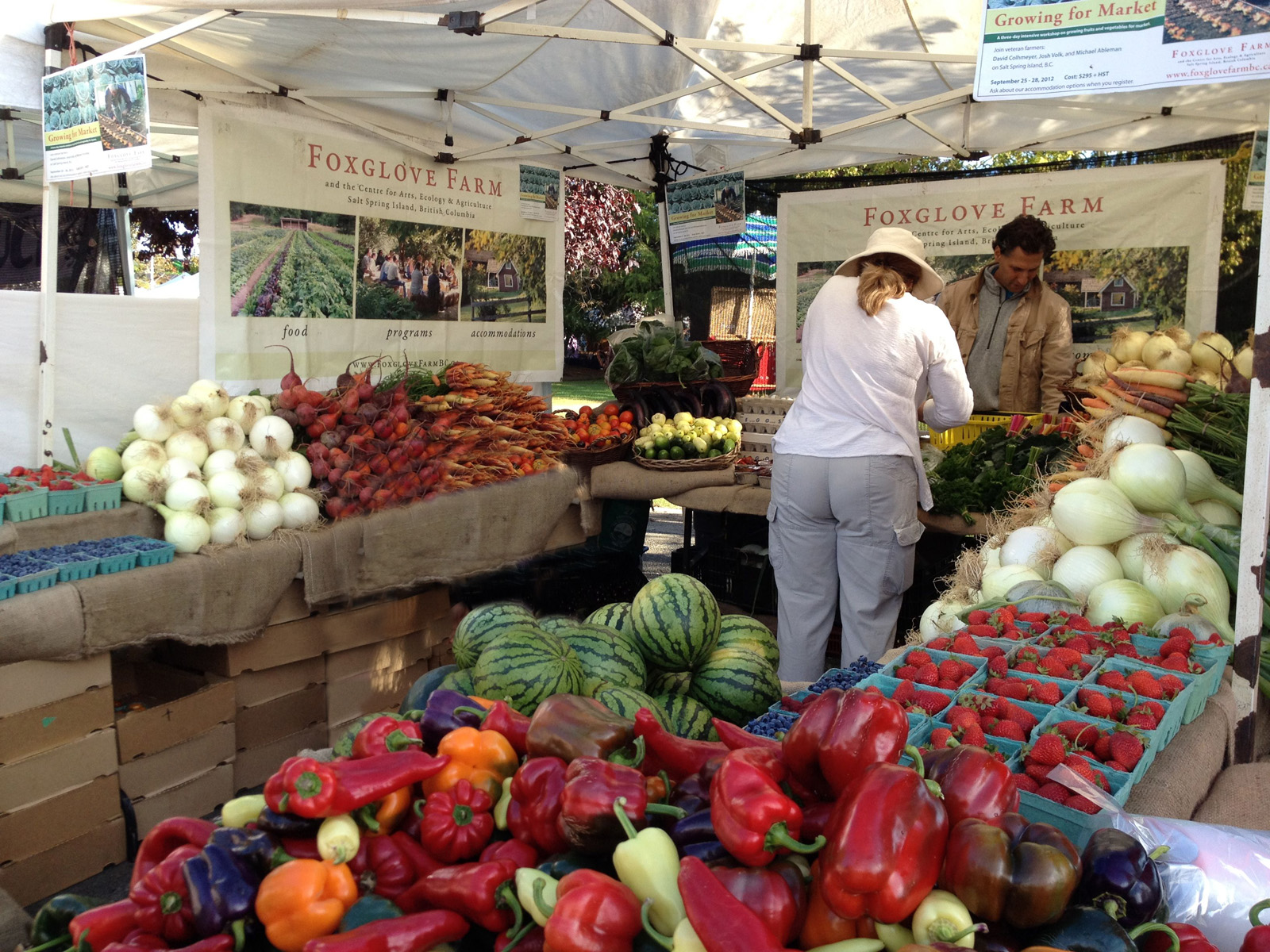 When we cruise in British Columbia’s Gulf Islands and can work out the timing, we like to try to be in Ganges on a Saturday so we can take in a Salt Spring Island Saturday market. The market is held in Centennial Park in the heart of downtown Ganges, and offers a wonderful assortment of organic and locally produced foods, as well as a wide selection of arts and crafts.