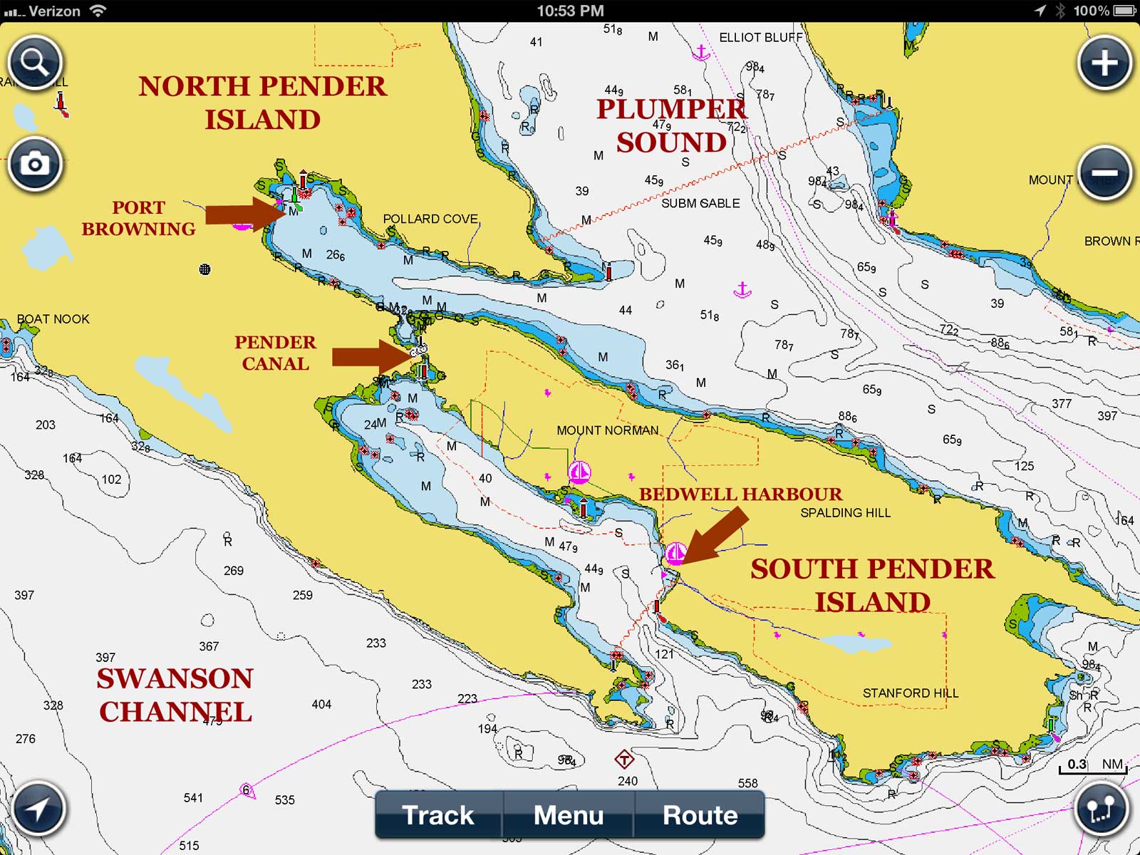 This chart is a screen shot from the Navionics app on my iPad, showing the area around Port Browning.