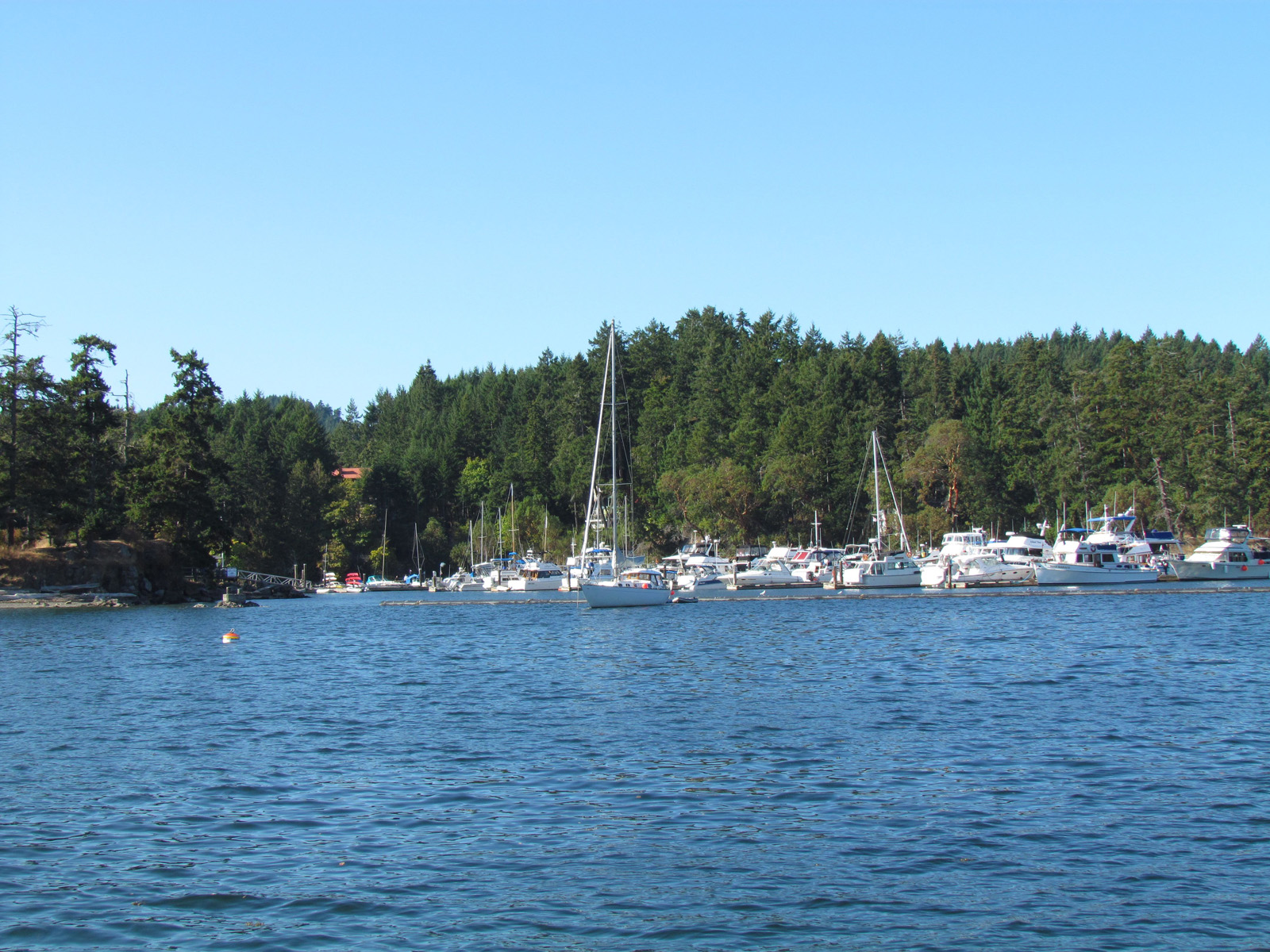 After our busy day in Ganges, today we were content to relax aboard Phoenix, and didn’t even put the dinghy over the side. It was a pleasant afternoon for reading, enjoying the quiet anchorage, and watching boat traffic. We watched several more boats come in and either go to the marina or anchor (it’s Saturday night) and by the late afternoon we noticed that the marina seemed to be turning away boats so we assume it was full.