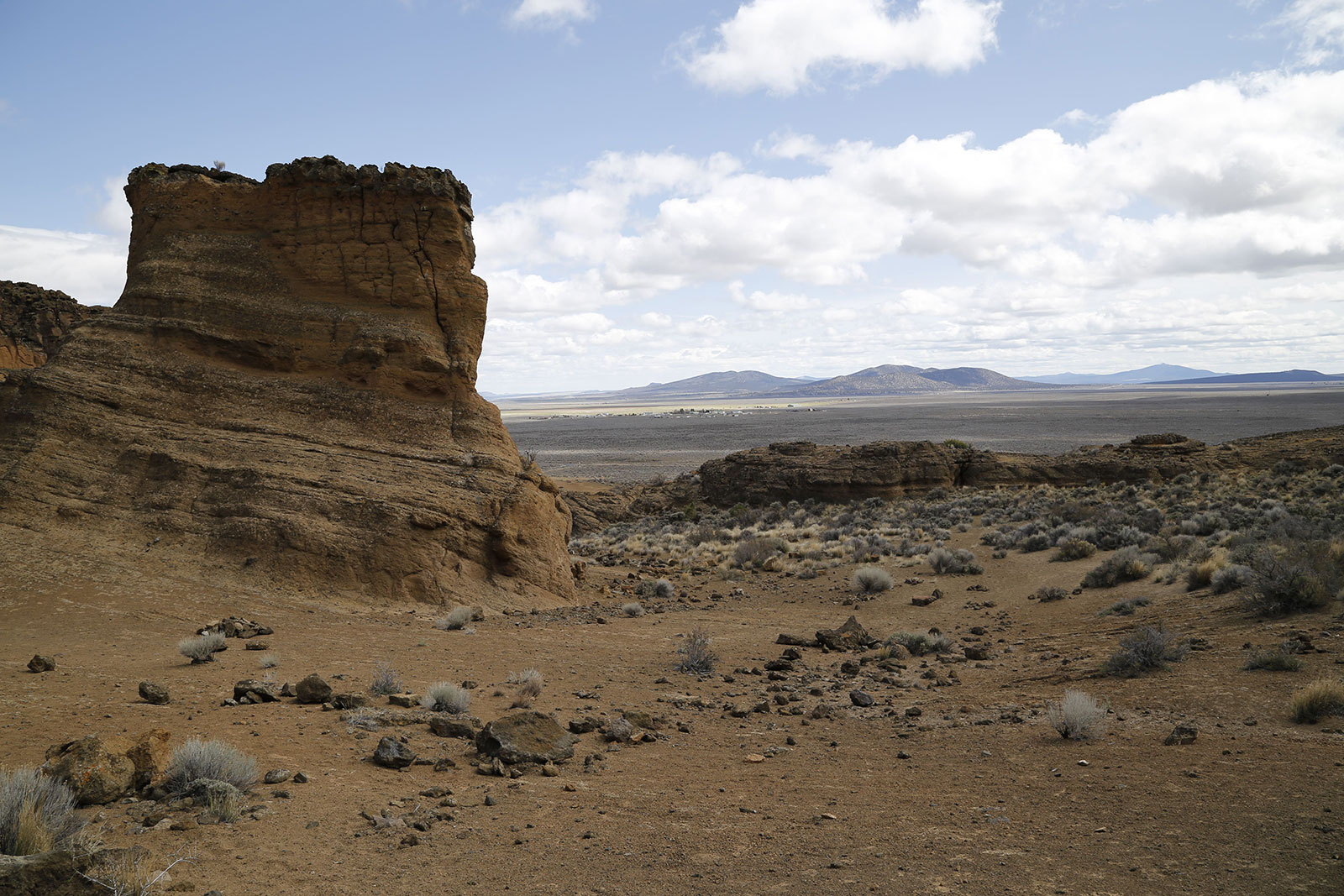 This photo was taken as we were hiking at Fort Rock State Park. It shows some of the rocks in the park as well as views of the barren high desert plateau surrounding the park.