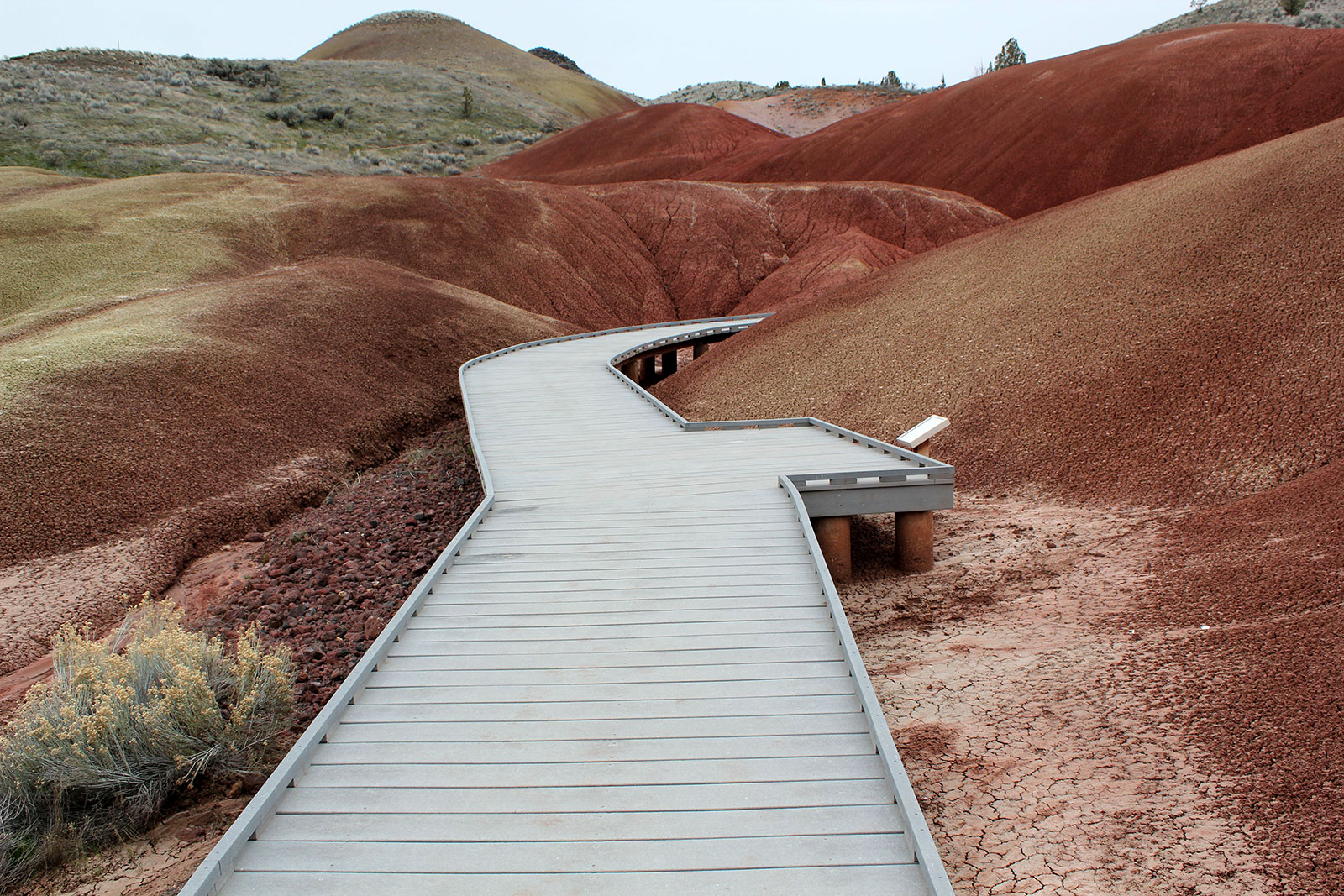 In March, we hiked at the Painted Hills Unit of the John Day Fossil Beds National Monument, where the hills are streaked with colors of red, gold, green, and black. It’s gorgeous!