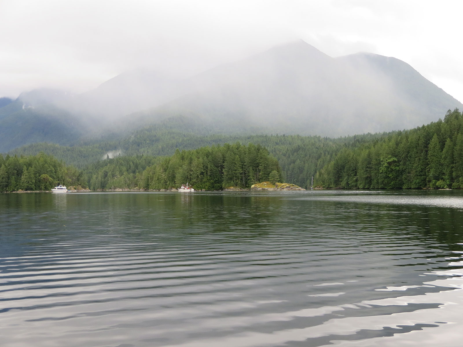 We ended up staying two more days in Prideaux Haven, one of the premier anchorages in Desolation Sound Marine Provincial Park. The unsettled weather persisted, including strong southeast winds in the straits. However, it was calm in the anchorage and was a good place to stay until we had better traveling weather. Our day started out cloudy and dry, but the rain set in by mid-morning and turned into a downpour for the rest of the day…and night…and next day…and night… You get the picture.