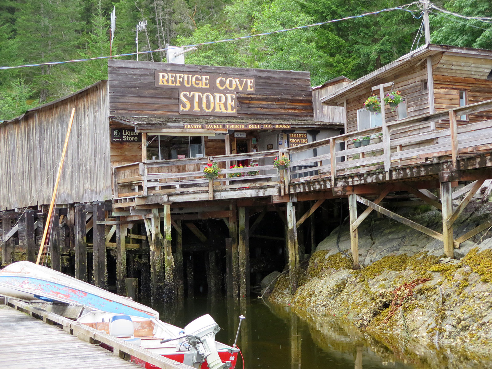 Refuge Cove, on West Redonda Island, is a main supply point for boats traveling in Desolation Sound. The facility includes a fuel dock and a store with basic supplies, a small selection of fresh vegetables, dairy items, frozen foods, a full liquor store, a post office, and a small café/gift shop. Their moorage includes power and WiFi, so we decided to head over there.