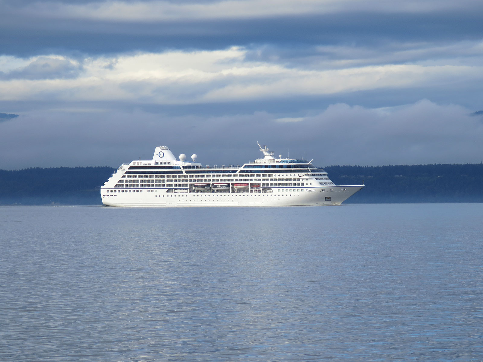 As we turned south on Georgia Strait, we watched the northbound Oceania cruise ship “Regatta” cruising slowly toward Seymour Narrows. The slack current in Seymour was almost 3 hours away, so we think the ship was going slow so it didn’t reach the rapids too soon.