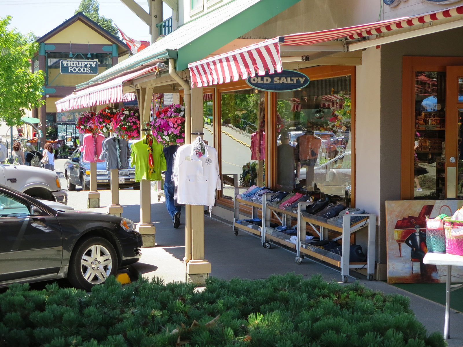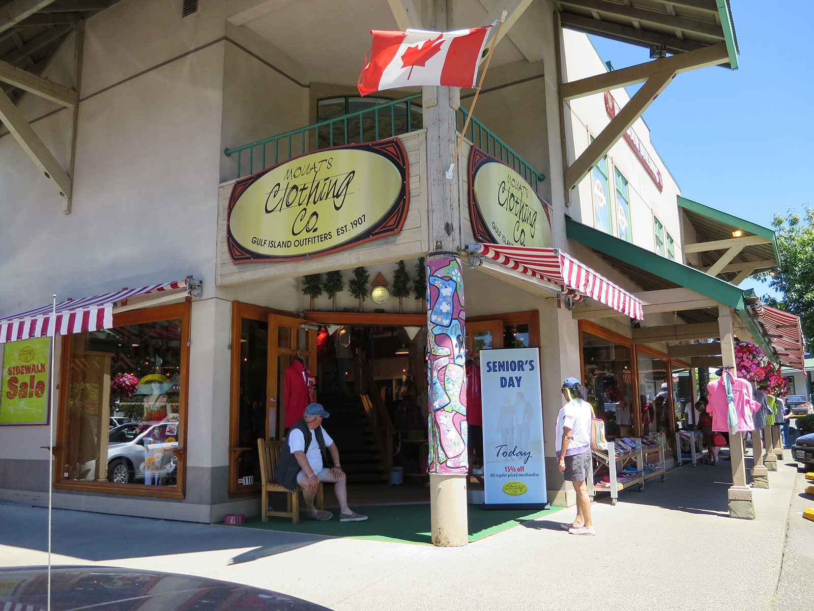 We walked to town to look around the shops. It’s about one-half mile walk along a path at the side of the highway. Took about 10 minutes each way. Most of the shops haven’t changed much since we were here last summer, but it’s always fun to walk around Ganges. We stopped in the Thrifty Foods for some bread. There were lots of people in town, which is the usual situation in Ganges on summer days. The ice cream shop is still there…and still has good waffle cones! We couldn’t resist.