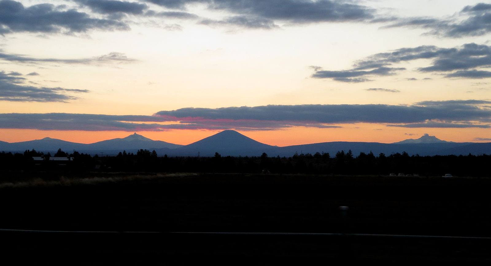 We got back to Bend just as the sun was setting. Got a quick shot of the afterglow above the Cascade Mountains to the west of Bend.