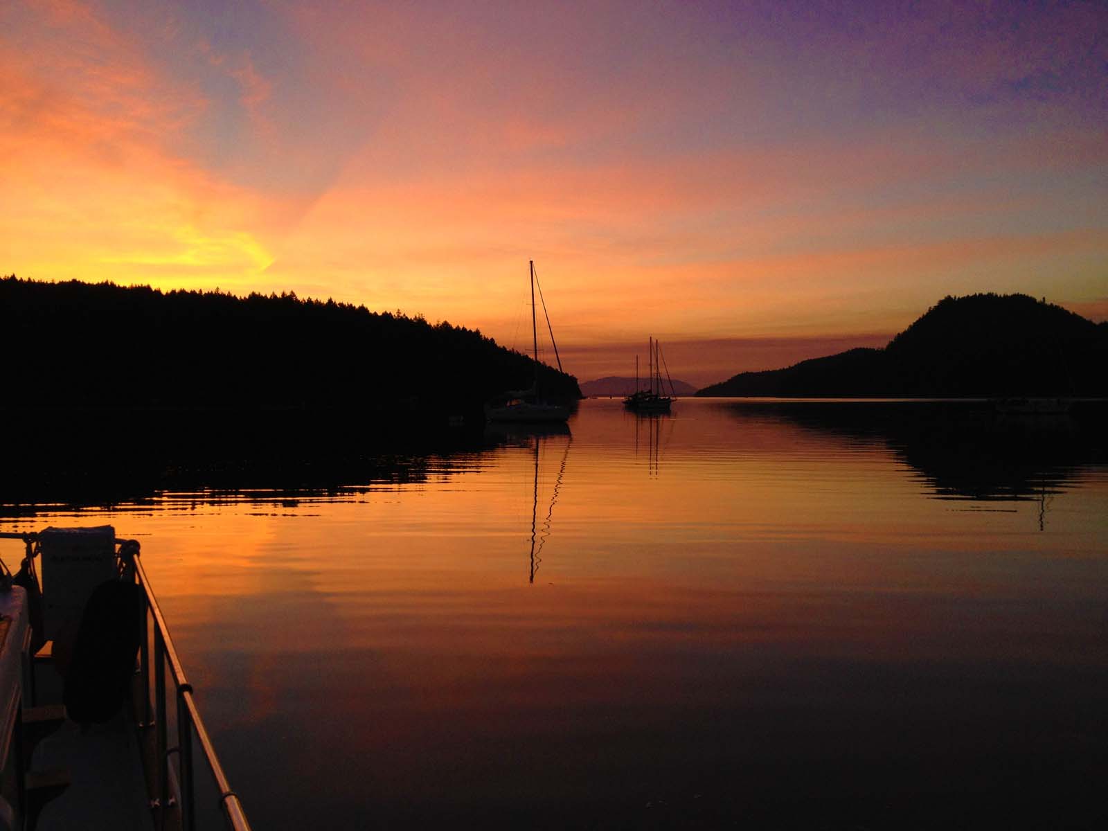 Nothing in the San Juans seemed right, so we finally decided to head into Canada, and go to Montague Harbour. Montague is one of our favorite anchorages in the Gulf Islands, particularly because it offers a very large anchoring area as well as some enjoyable hiking and a small store at the Montague Harbour Marina (http://www.montagueharbour.com). With our Nexus passes, we can clear Canadian Customs by cell phone in Boundary Pass and arrange to stop in Montague for a customs inspection, if they want to board us. They did not.