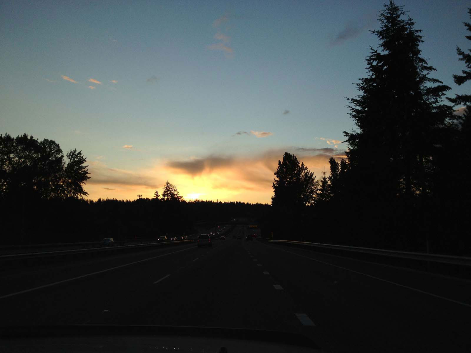 Blue sky and a nice sunset are a welcome change as we approach the junction of I-405 and I-5